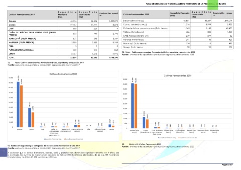 72. Tabla: Cultivos permanentes, Provincia de El Oro, superficie y producción 2017.