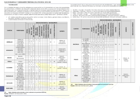 127. Tabla: Unidades educacionales a nivel cantonal en la provincia de El Oro