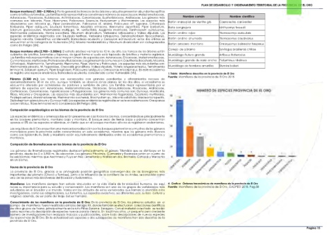 recae su importancia para su estudio y conservación. Los mamíferos son uno de los grupos de vertebrados más Fuente: Mamíferos de la provincia de El Oro, GADPEO 2018, Pag.58
