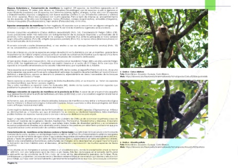 Riqueza, Endemismo y Conservación de mamíferos: Se registran 139 especies de mamíferos agrupados en 34
