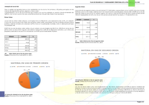 territorio, de manera que las vías que conectan poblaciones más grandes tienen mayor jerarquía. segundo orden se encuentran en estado regular, esto suma un total de 327,04 km; las vías en buen estado suman