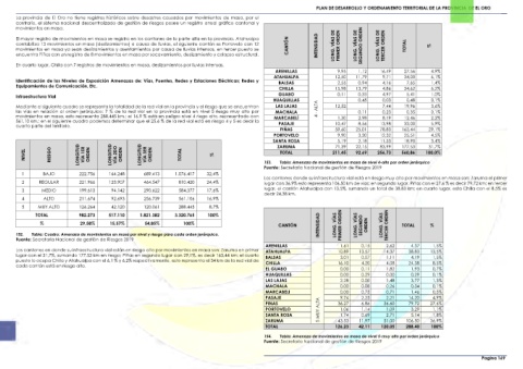 contabiliza 13 movimientos en masa (deslizamientos) a causa de lluvias, el siguiente cantón es Portovelo con 12 CANTÓN INTENSIDAD LONG. VÍAS DE PRIMER ORDEN LONG. VÍAS DE SEGUNDO ORDEN LONG. VÍAS DE TERCER ORDEN TOTAL %