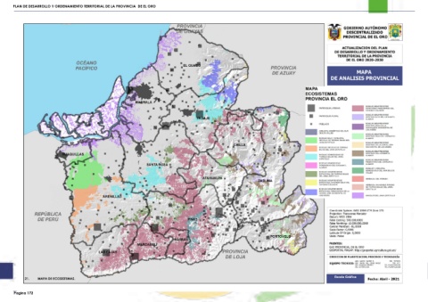 PLAN DE DESARROLLO Y ORDENAMIENTO TERRITORIAL DE LA PROVINCIA DE EL ORO PLAN DE DESARROLLO Y ORDENAMIENTO TERRITORIAL DE LA PROVINCIA DE EL ORO 21. MAPA DE ECOSISTEMAS. Pagina 172
