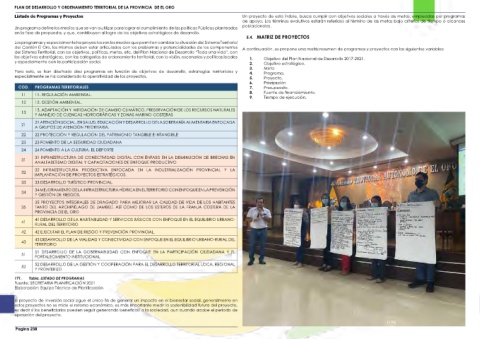 del Cantón El Oro, los mismos deben estar articulados con los problemas y potencialidades de los componentes A continuación, se propone una matriz resumen de programas y proyectos con las siguientes variables: