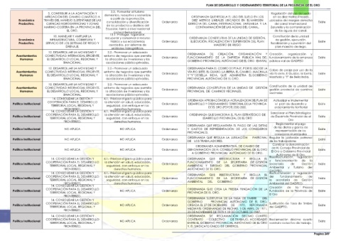 Político Institucional Ordenanza DESARROLLO Y ORDENAMIENTO TERRITORIAL DE LA PROVINCIA el plan de desarrollo y Existe