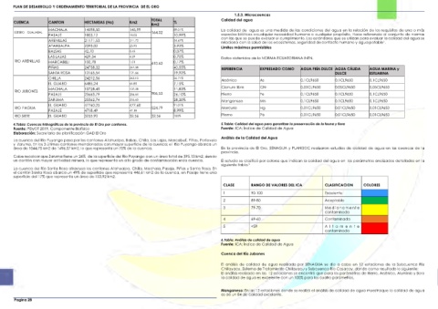 4. Tabla: Cuencas hidrográficas de la provincia de El Oro por cantones. 5. Tabla: Calidad del agua para garantizar la preservación de la fauna y flora