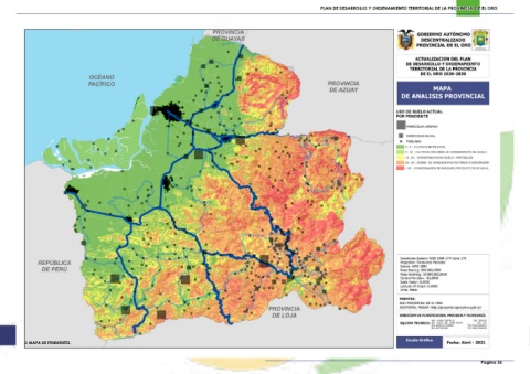 PLAN DE DESARROLLO Y ORDENAMIENTO TERRITORIAL DE LA PROVINCIA DE EL ORO PLAN DE DESARROLLO Y ORDENAMIENTO TERRITORIAL DE LA PROVINCIA DE EL ORO 2. MAPA DE PENDIENTES. Pagina 36