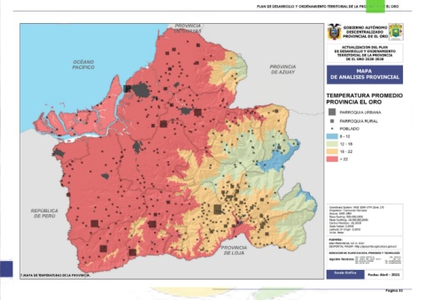 PLAN DE DESARROLLO Y ORDENAMIENTO TERRITORIAL DE LA PROVINCIA DE EL ORO PLAN DE DESARROLLO Y ORDENAMIENTO TERRITORIAL DE LA PROVINCIA DE EL ORO 7. MAPA DE TEMPERATURAS DE LA PROVINCIA. Pagina 53