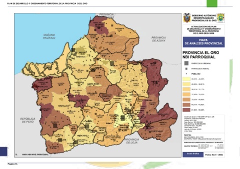 PLAN DE DESARROLLO Y ORDENAMIENTO TERRITORIAL DE LA PROVINCIA DE EL ORO PLAN DE DESARROLLO Y ORDENAMIENTO TERRITORIAL DE LA PROVINCIA DE EL ORO 12. MAPA NBI NIVEL PARROQUIAL. Pagina 76