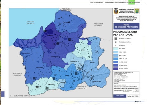 PLAN DE DESARROLLO Y ORDENAMIENTO TERRITORIAL DE LA PROVINCIA DE EL ORO PLAN DE DESARROLLO Y ORDENAMIENTO TERRITORIAL DE LA PROVINCIA DE EL ORO 13. MAPA PEA NIVEL CANTONAL. Pagina 89